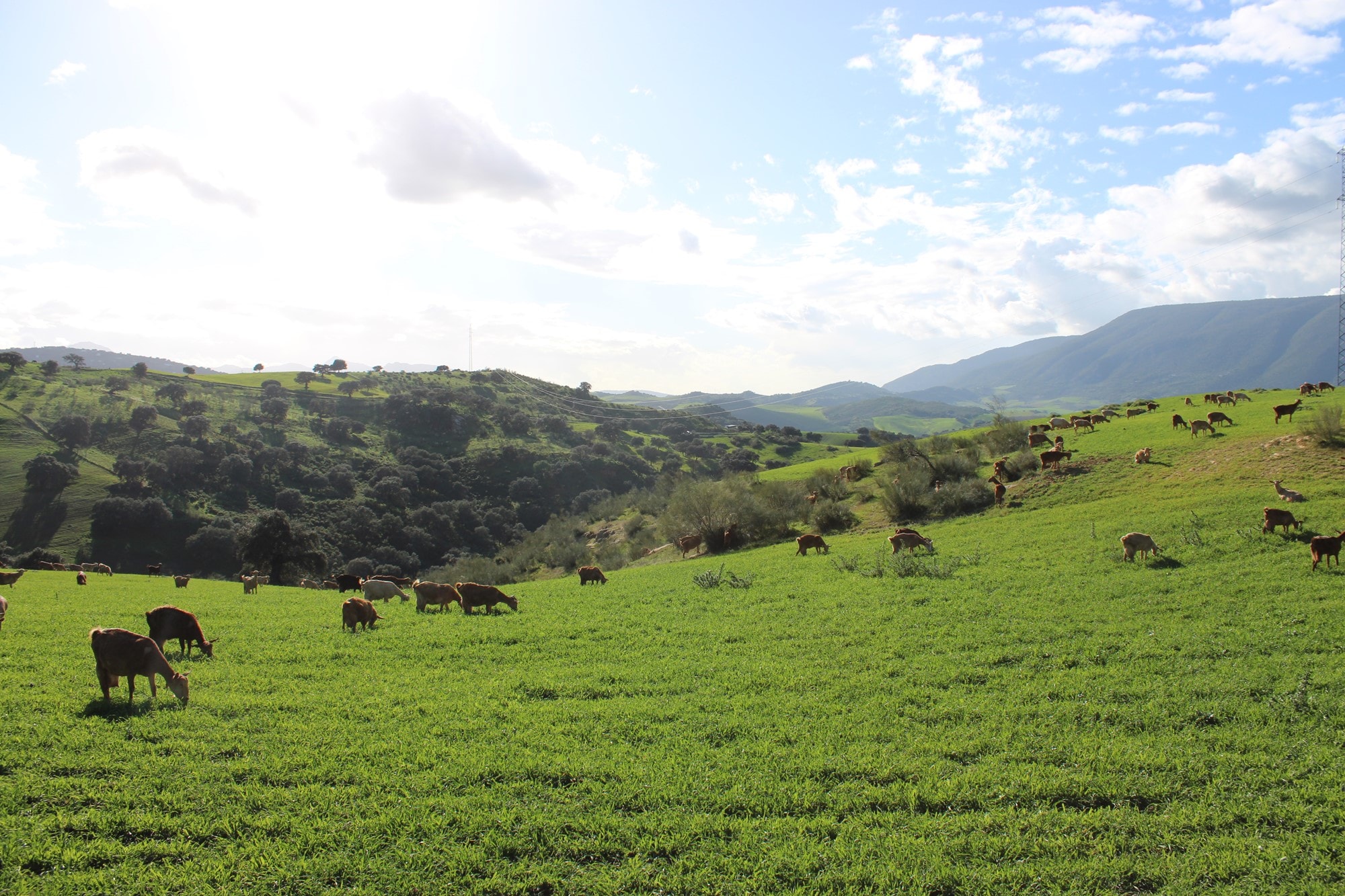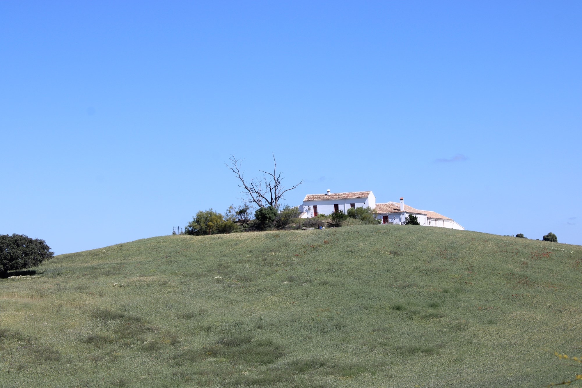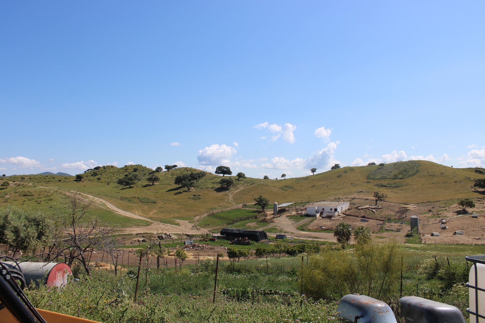 Dotted with venerable holm oaks, wild olive trees, gall oaks, and carob trees, the land exudes the wild and untamed spirit of the region. Agriculture and livestock thrive in perfect harmony, with approximately 1,000 animals—including goats, sheep, cattle, pigs, and horses—grazing freely across the pastures. The fertile fields currently cultivate 70 hectares of golden cereals, though the land holds the potential to return to its former expanse of 150 hectares, as it once did in years past.