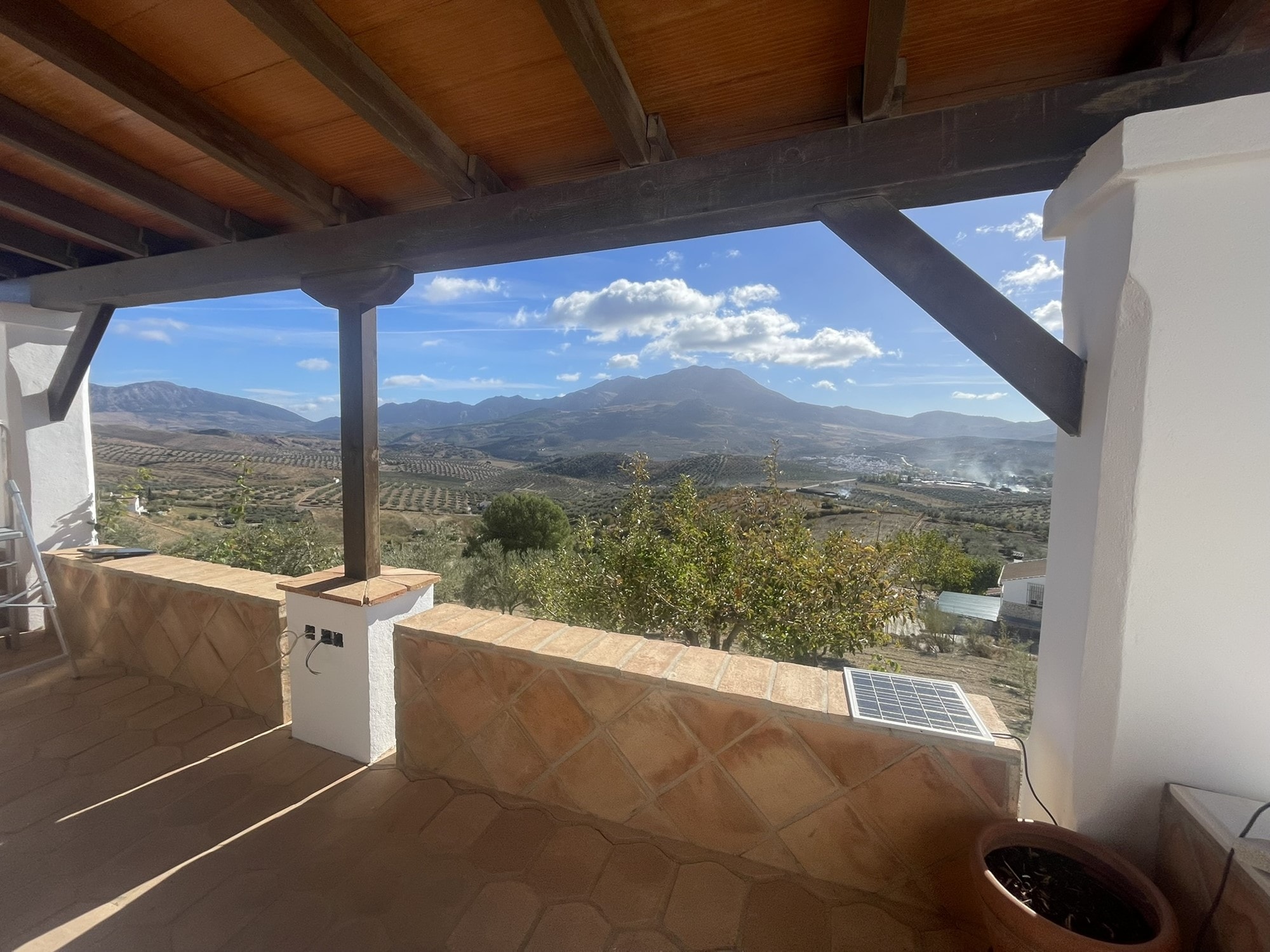 Built in 2006, the house is powered by 10 large solar panels with a storage capacity of 15,200W, ensuring efficient and sustainable living. At the front of the property, a stunning large covered terrace overlooks the spectacular scenery—perfect for al fresco dining, barbecues, or simply relaxing while taking in the views.