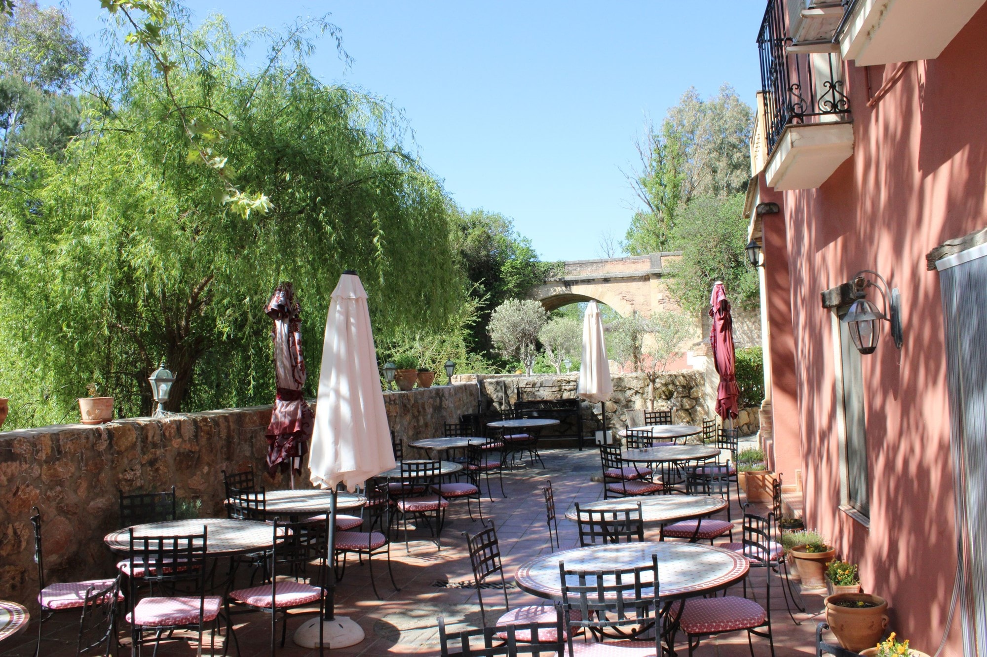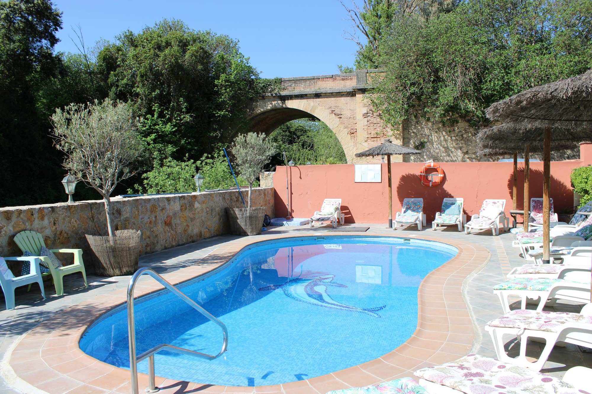 The hotel boasts a delightful swimming pool area, adorned with beautiful courtyards featuring water features, and lush grounds dotted with fruit trees. The private gardens along the riverside lead to a picturesque waterfall, providing a serene and scenic environment. The hotel has successfully hosted weddings and parties, and offers the option to rent out the entire establishment for exclusive use. Additionally, it caters to biking enthusiasts, providing a bike-friendly repair area for guests to explore the captivating scenic routes and famous white villages surrounding Ronda.