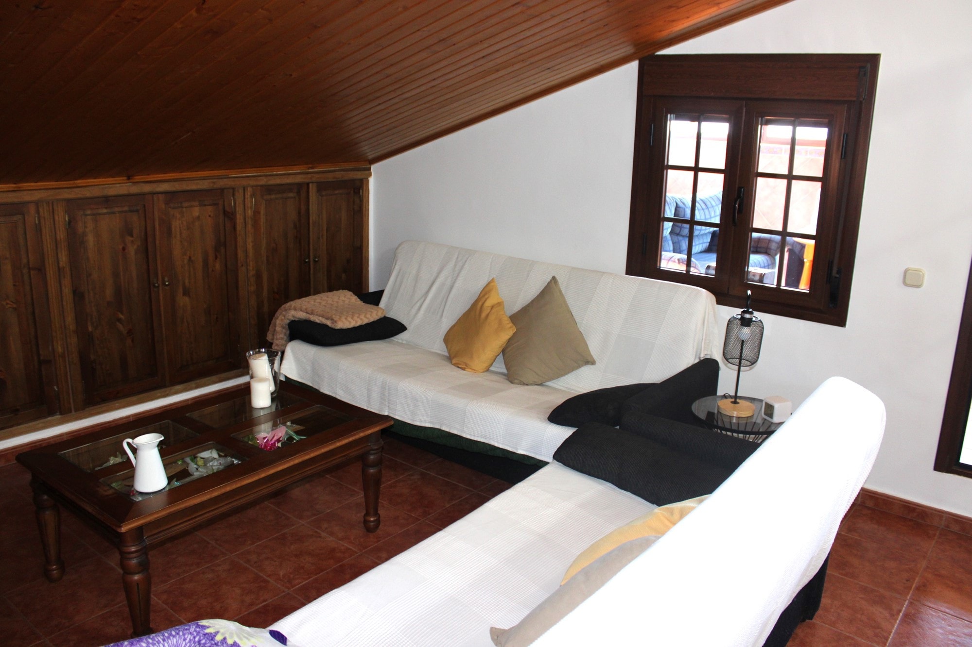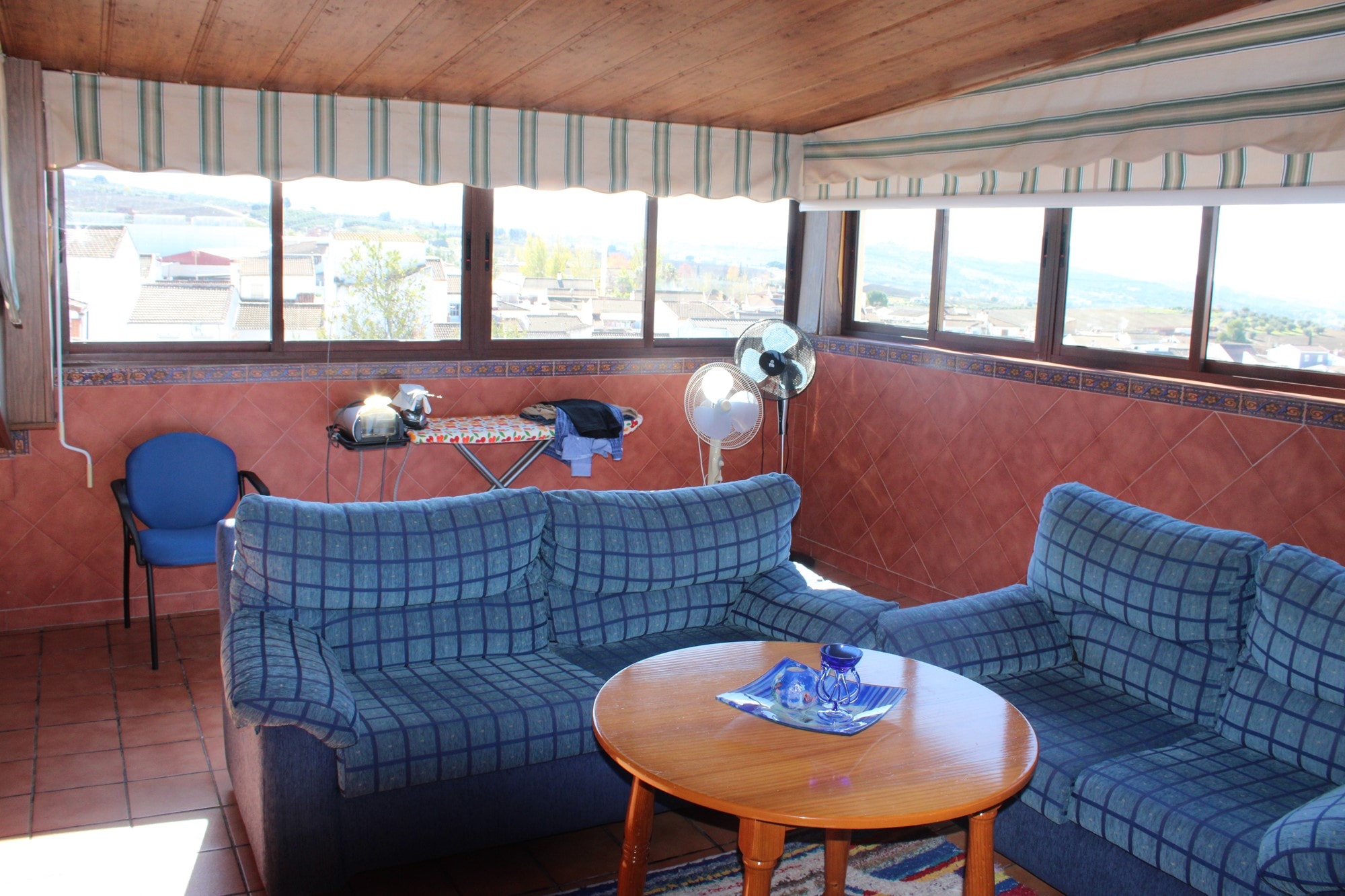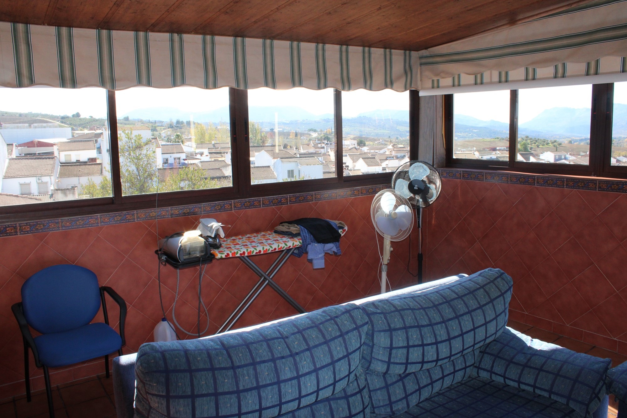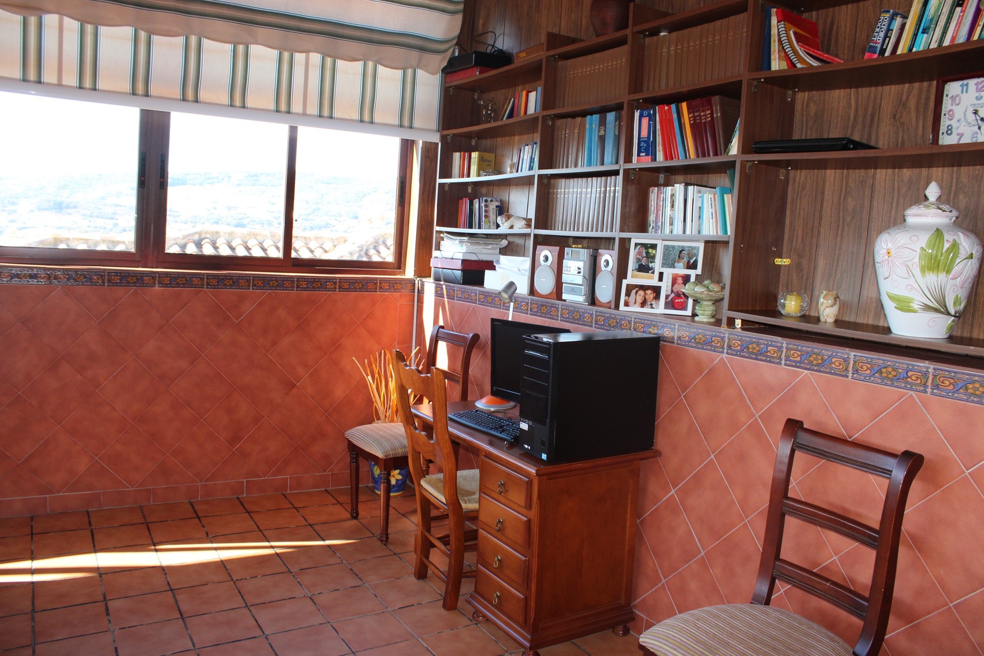 Ascending to the second floor reveals an extra bedroom, currently utilized as an office, boasting a private terrace of approximately 20 square meters that provides breathtaking views of the countryside. This level also hosts a second lounge space and another bathroom, with 8 aditional fitted wardrober. A generous second terrace, approximately 28 square meters, captures stunning views of the surrounding mountains and has been enclosed with surrounding windows, creating a versatile space for year-round use. Currently serving as a lounge and library room, this area can easily be transformed into an open terrace again.