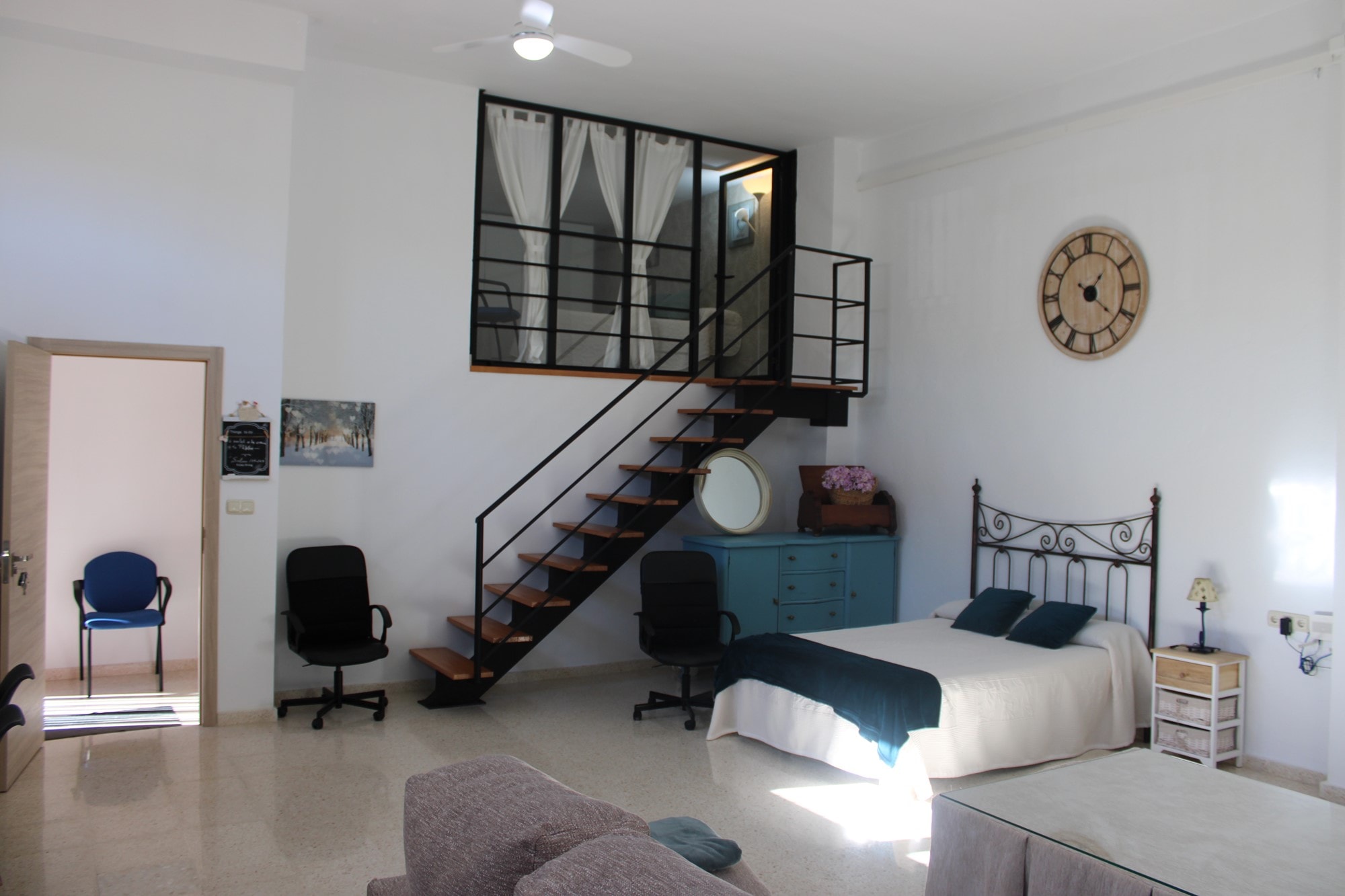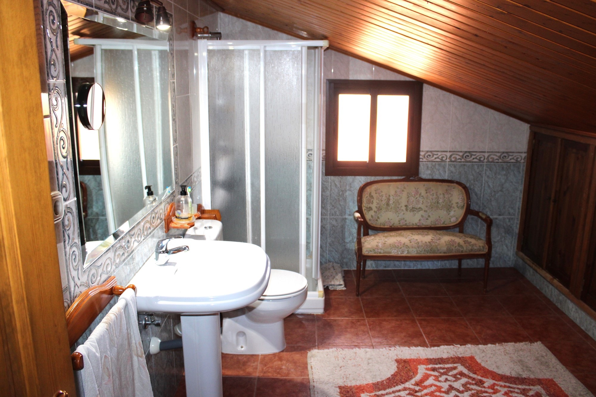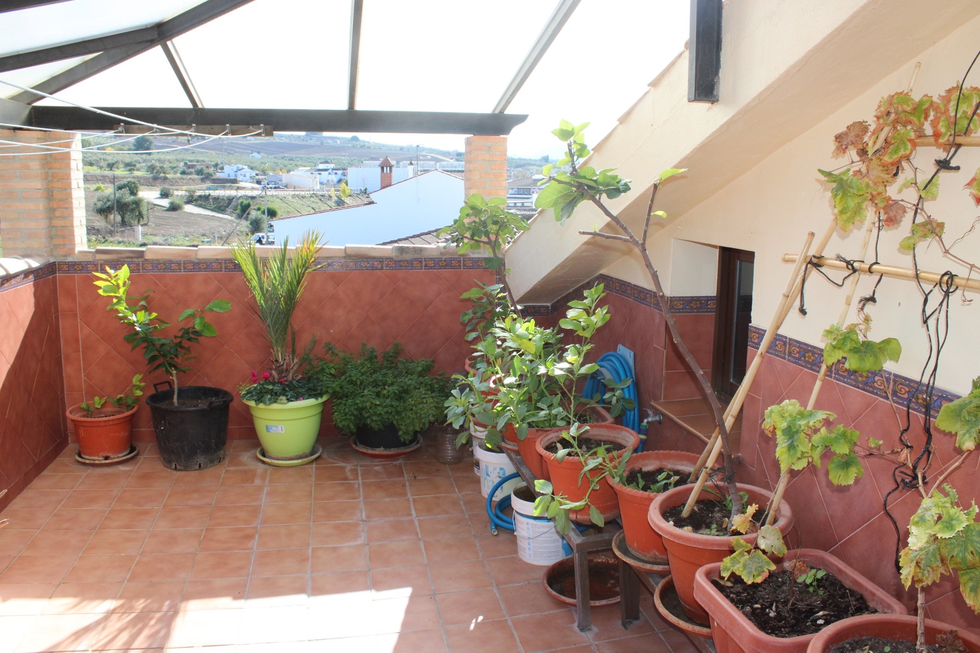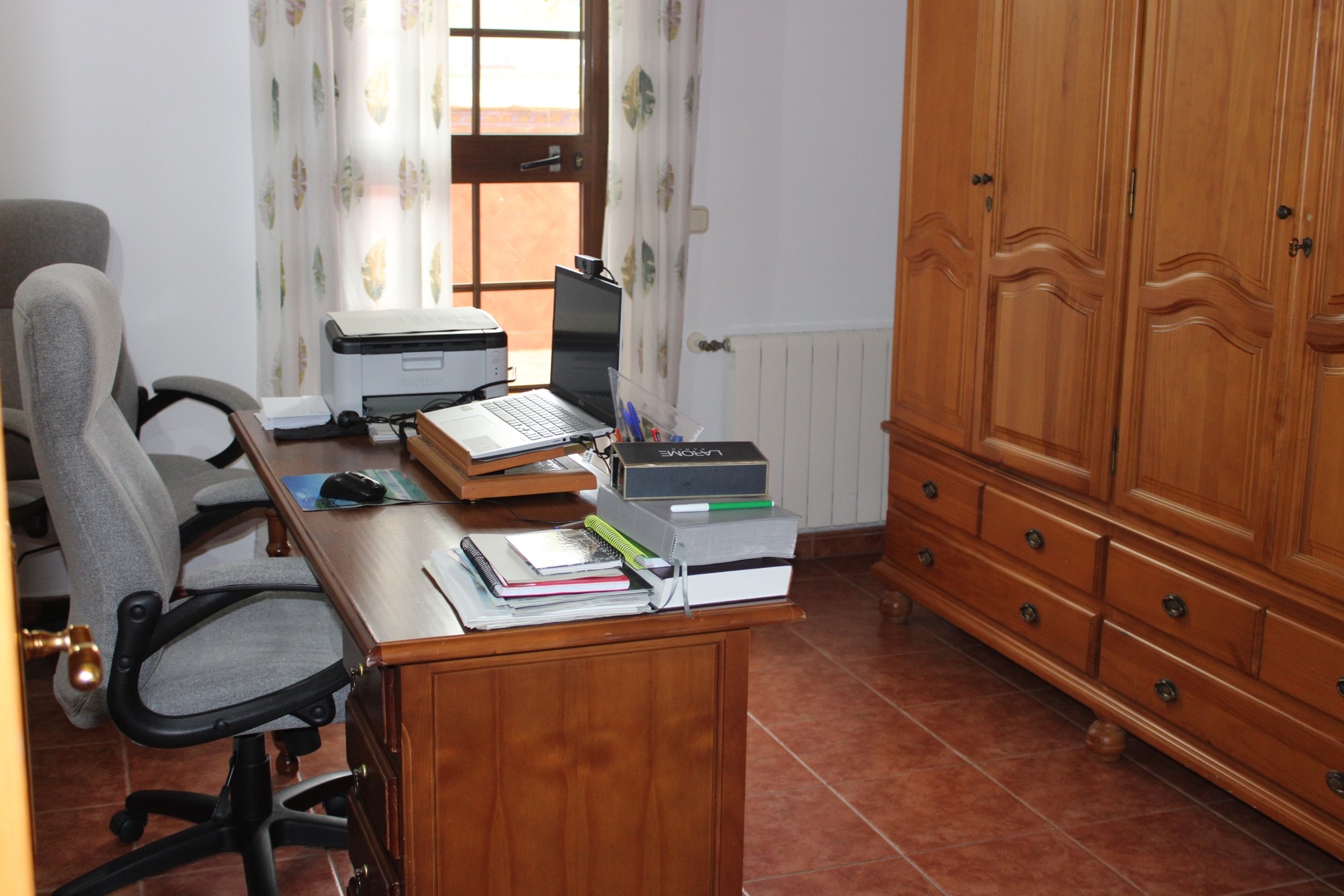 Ascending to the second floor reveals an extra bedroom, currently utilized as an office, boasting a private terrace of approximately 20 square meters that provides breathtaking views of the countryside. This level also hosts a second lounge space and another bathroom, with 8 aditional fitted wardrober. A generous second terrace, approximately 28 square meters, captures stunning views of the surrounding mountains and has been enclosed with surrounding windows, creating a versatile space for year-round use. Currently serving as a lounge and library room, this area can easily be transformed into an open terrace again.