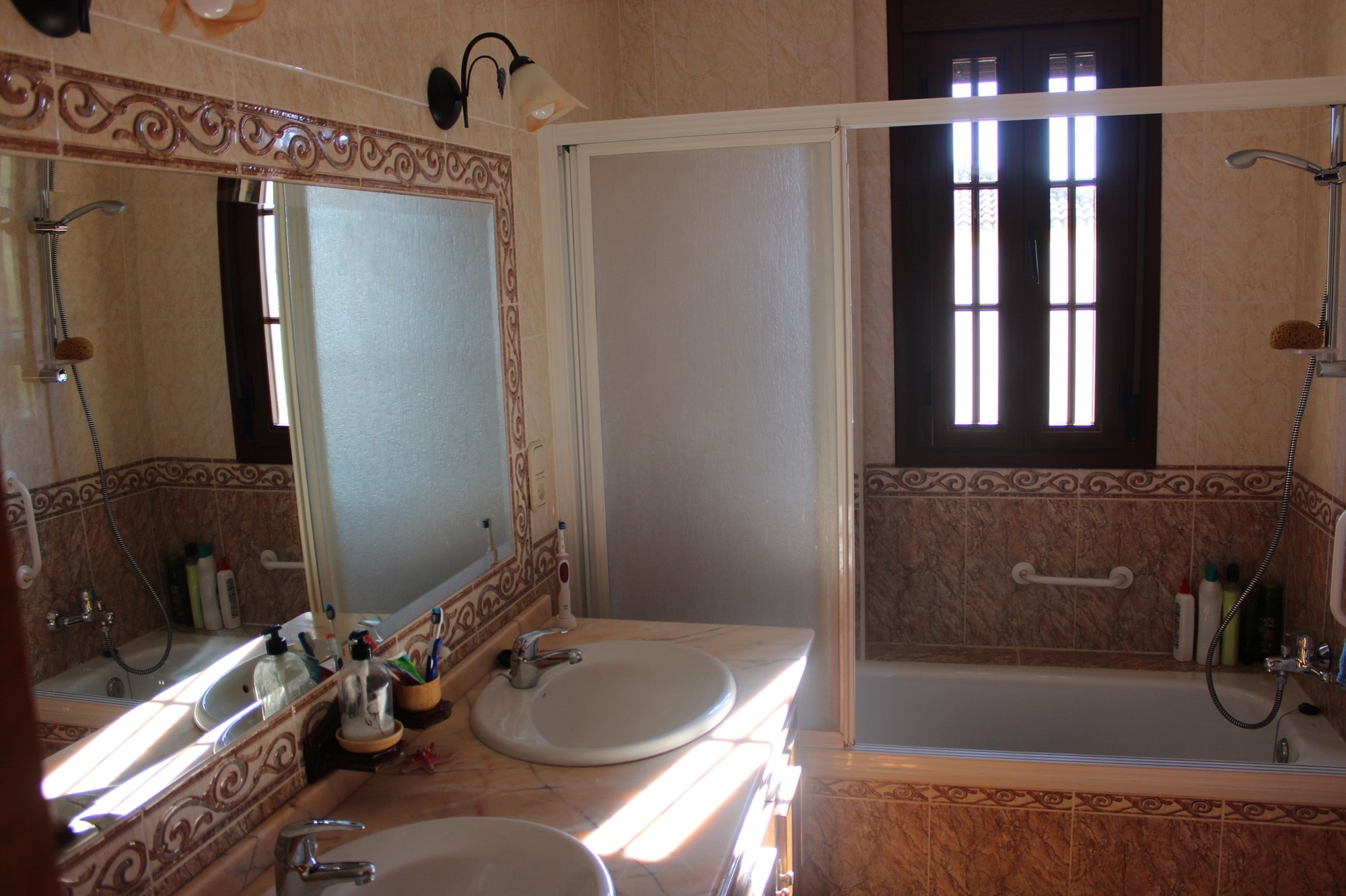 This impressive property is a fusion of a 4-bedroom townhouse and a spacious modern 2-bedroom apartment located beneath it. The main residence unfolds over two levels, adorned with beautiful Spanish features throughout.