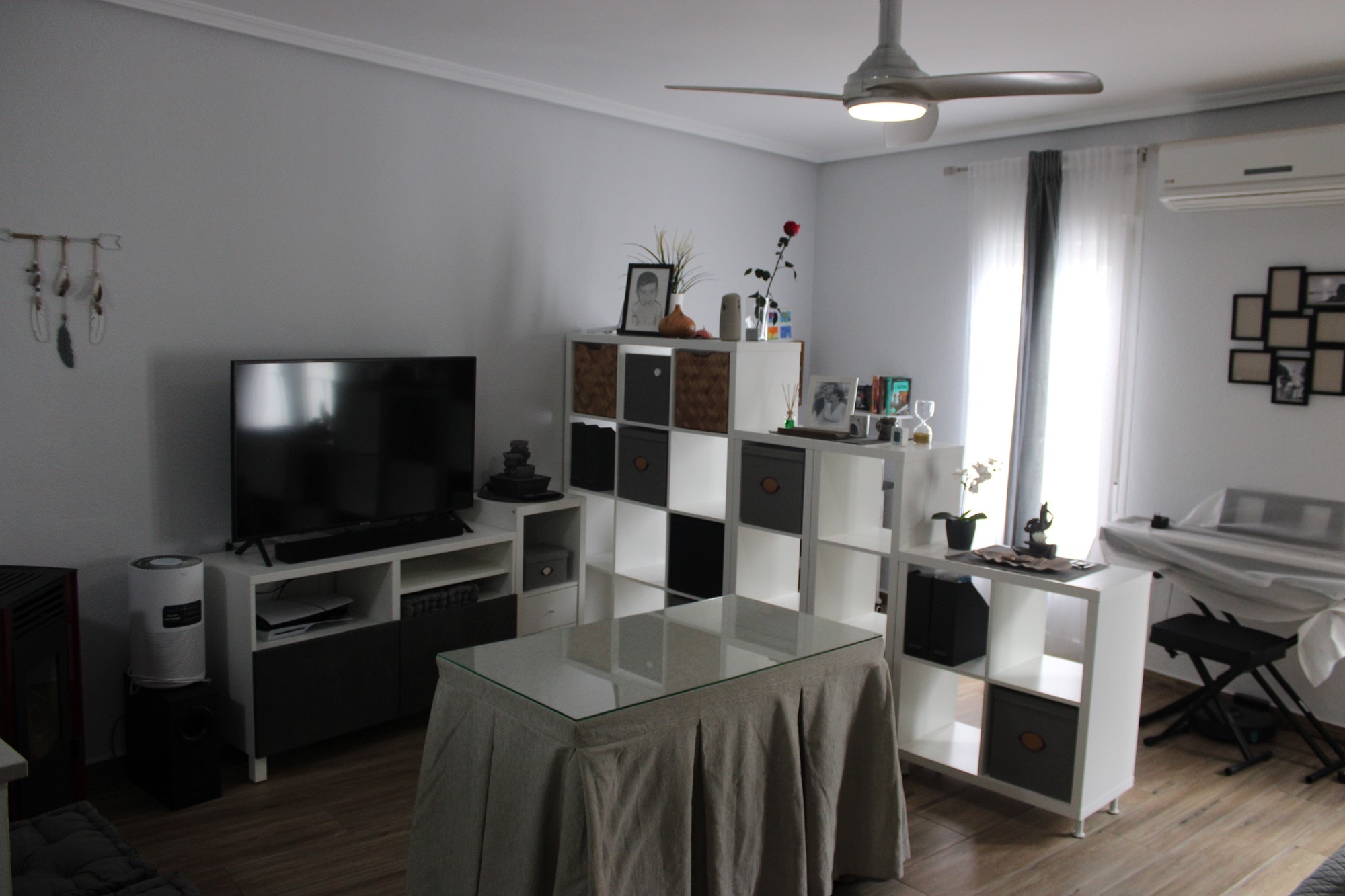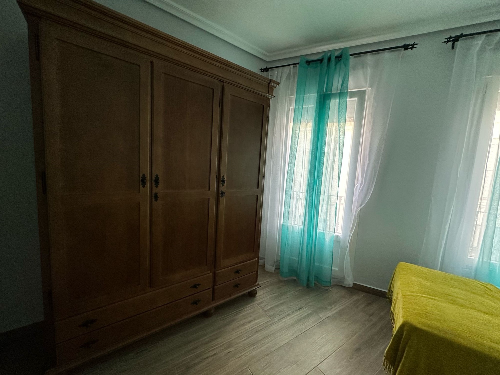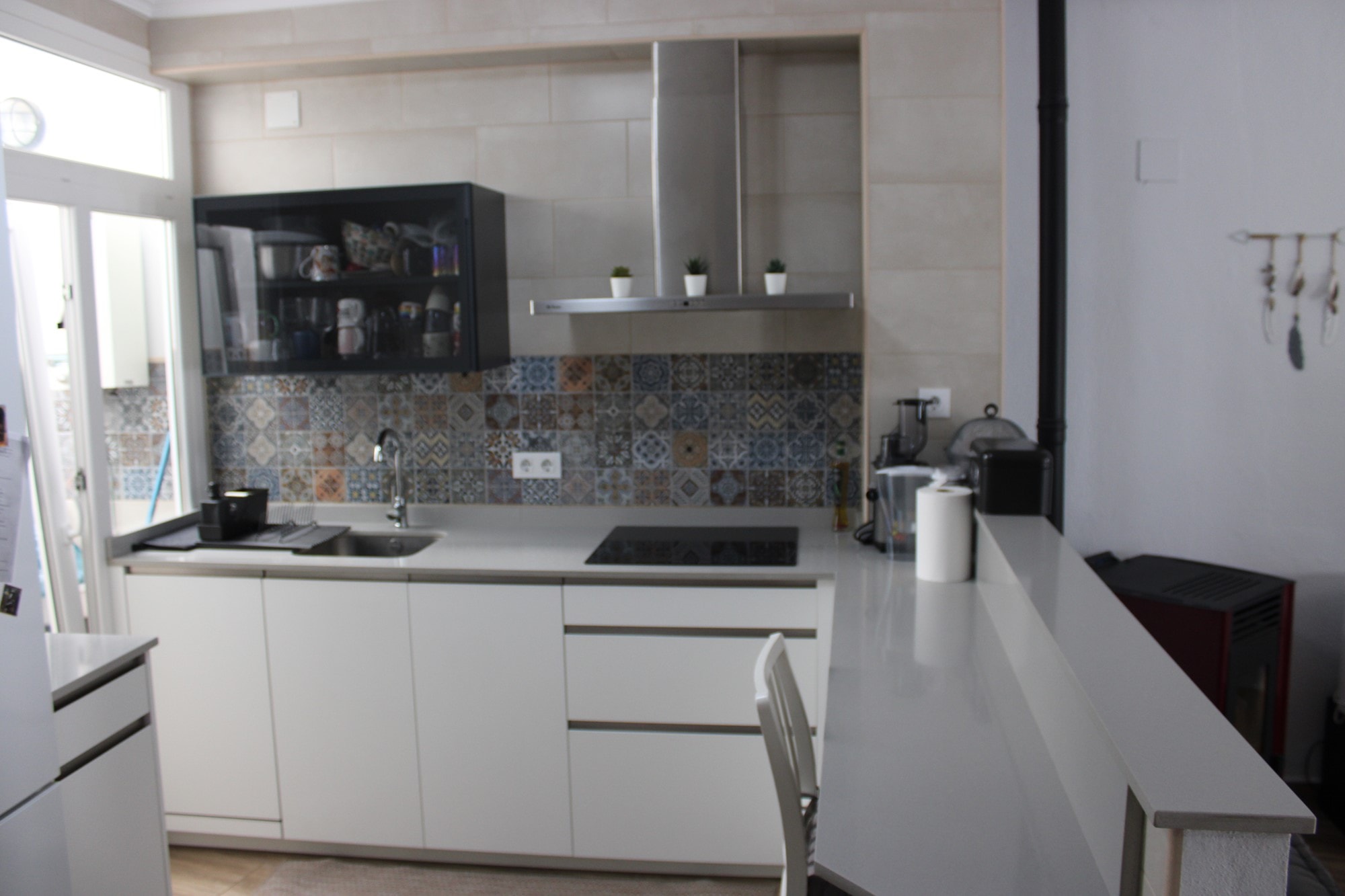 The lounge is bright and welcoming, with a Juliet balcony that allows natural light and fresh air to pour in. Another Juliet balcony can be found in one of the bedrooms, enhancing the charm and character of the home. Every window is fitted with mosquito nets and manual blinds, ensuring comfort throughout the year.
