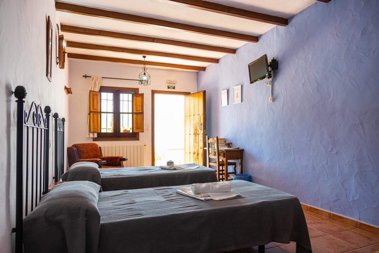 Agricultural areas include productive organic hojiblanca olive groves, a traditional organic almond plantation, and a conventional picual olive grove, all well established and adapted to the terrain. The estate also features several existing buildings for residential and tourism use, including hotel-style accommodation, a main dwelling, auxiliary buildings and a swimming pool, offering immediate potential for rural tourism or private enjoyment.